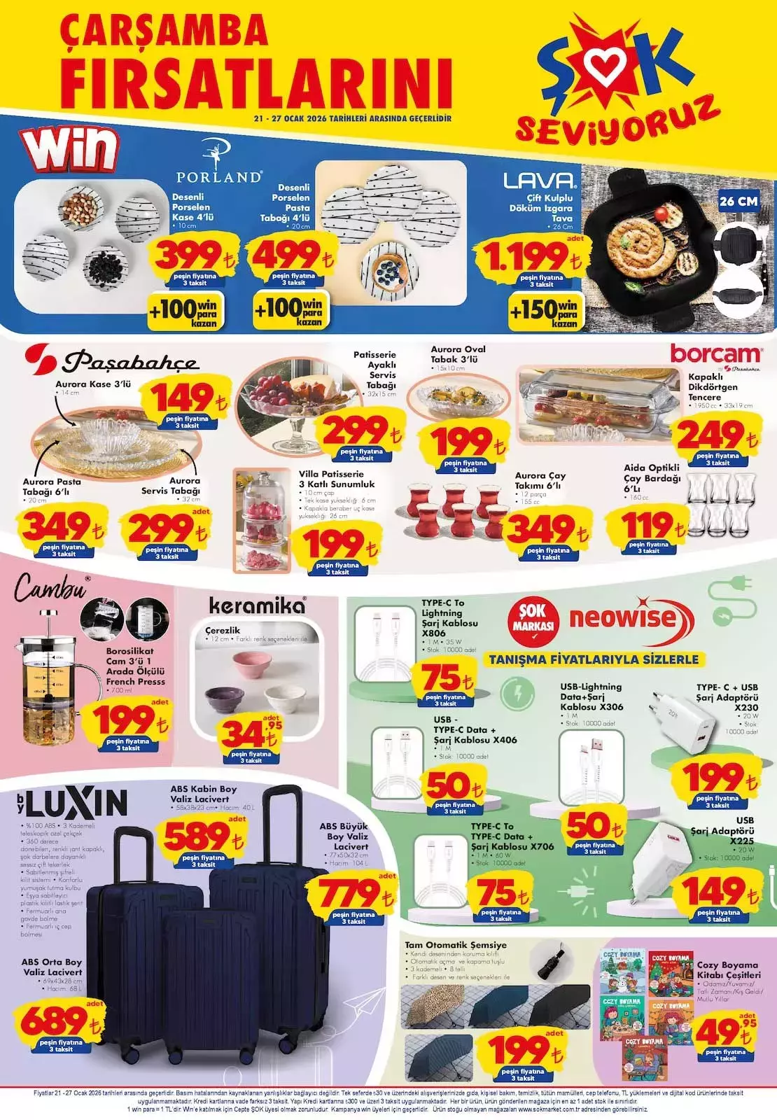 ŞOK 24–27 Ocak aktüel kataloğu ürünleri, 24 Ocak Cumartesi gününden itibaren ŞOK mağazalarında ve online platformda satışa çıkacak. Aktüel ürünlerde stoklarla sınırlı satış yapılacağı hatırlatılırken, özellikle markalı giyim ve oto ürünlerinde erken saatlerde mağazaya gitmenin avantaj sağlayacağı belirtiliyor.